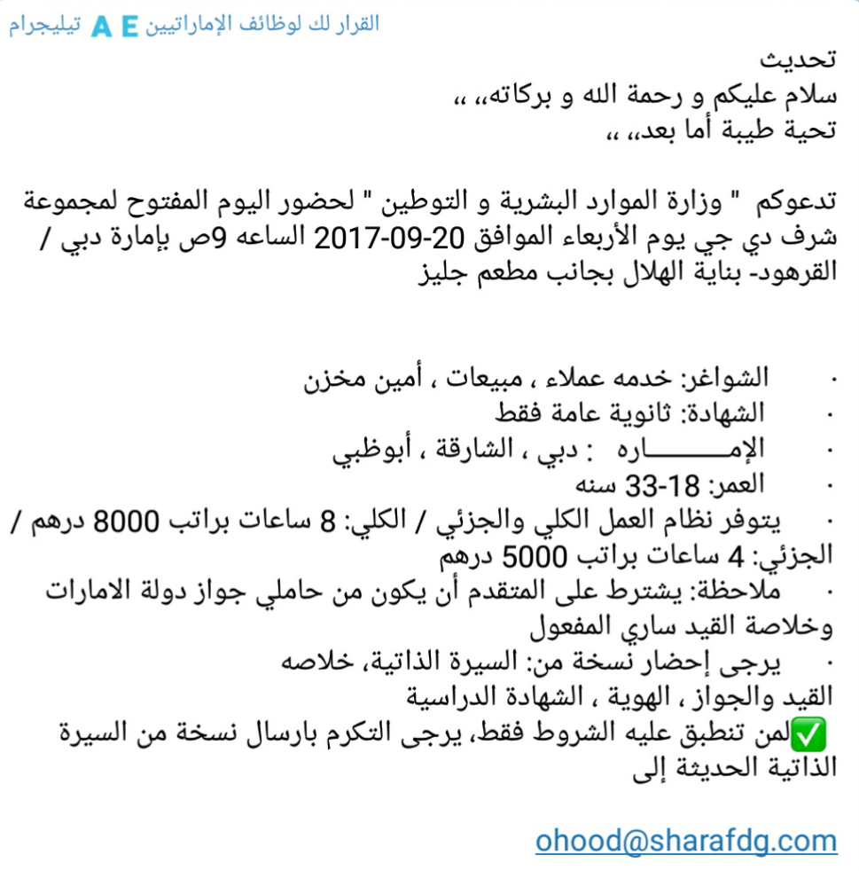وظائف مجموعة شرف دي جي وظائف شاغرة فى الامارات