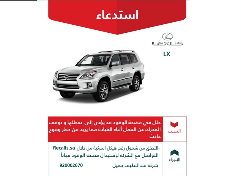 صحيفة صدى بالصور التجارة تعلن استدعاء 13 921 مركبة لكزس