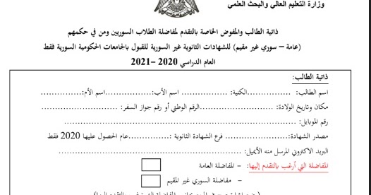 طلب الالتحاق بالجامعات الحكومية السورية 2020 2021